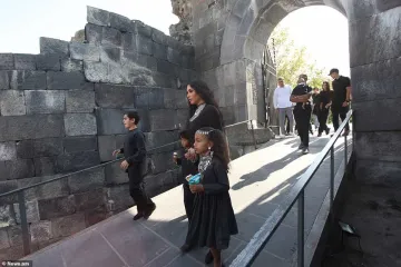 Քիմ Քարդաշյանը երեխաների հետ Հայաստանի պատմական տաճար այցելության ժամանակ կրել է...