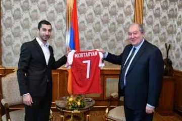 Հենրիխ Մխիթարյանն իր մարզաշապիկը նվիրել է նախագահ Արմեն Սարգսյանին (ֆոտո)