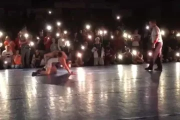 Հոսանքազրկումից հետո երկրպագուներն ըմբիշներին օգնել են շարունակել գոտեմարտը