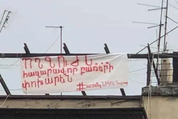 «Ողջույն… հազարավոր բառերի փոխարեն». պաստառ՝ Նիկոլ Փաշինյանի առանձնատան դիմաց