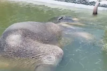 Տարօրինակ փիղը գիշերը քնում է լողավազանում, կնճիթը դուրս ցցած