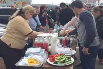Հայերը Մոսկվայում անվճար ուտելիք են բաժանում ծիրան գնելու՝ երկար հերթում կանգնածներին