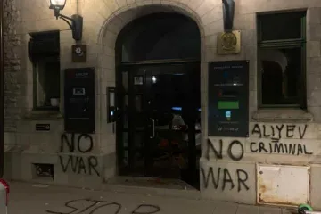 Ստոկհոլմում Ադրբեջանի դեսպանատան ճակատային հատվածին և հատակին մակագրվել են «Ո՛չ պատերազմին» և «Stop Ալիև» վանկարկումները