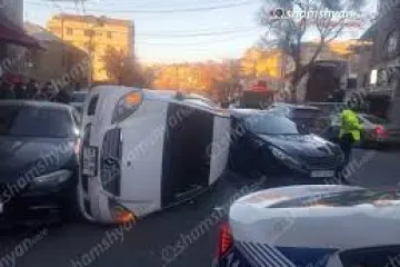 Խոշոր վթար Երևանում. բախվել է 3 մեքենա, 1-ը կողաշրջվել է