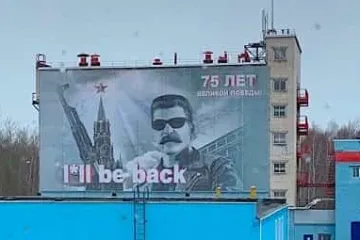 Ռուսաստանում կախել են պաստառ, որի վրա Ստալինն է եւ Տերմինատորի հայտնի խոսքերը՝ «I’ll be back!»