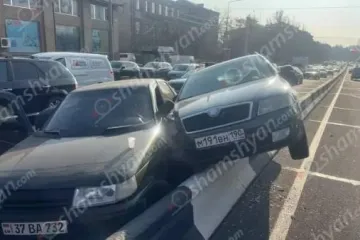 Կասկադյորական ավտովթար՝ Երևանում․ բախվել են Lada-ն և Skoda-ն․ վերջինը հայտնվել է բաժանարար գոտու արգելապատնեշի վրա
