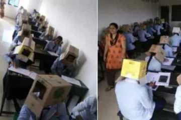 Հնդկաստանում առաջին կուրսի ուսանողները հանձնել են քննությունը՝ ստվարաթղթե տուփերը գլխներին