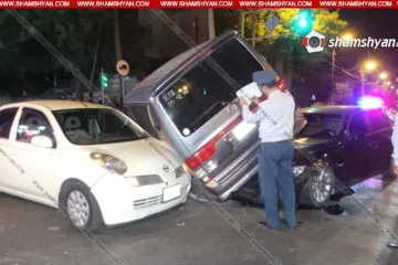 Կասկադյորական վթար Երեւանում․ Mazda-ն հայտնվել է BMW-ի և Nissan-ի վրա