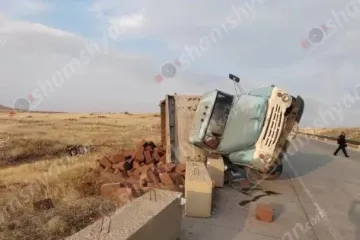 Խոշոր ավտովթար՝ Արագածոտնի մարզում․ Պարտիզակի խաչմերուկում տուֆ քարով բարձված «ԶԻԼ»-ը կողաշրջվել է