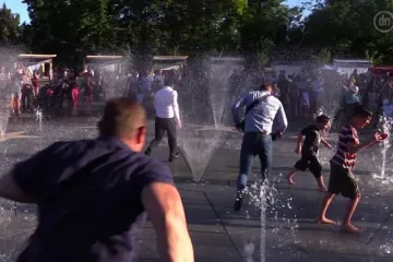 Զելենսկին քաղաքացիների աչքի առջև վազել է գործող շատրվանների միջով (տեսանյութ)