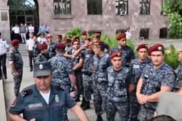 Ոստիկանությունը Վերաքննիչ քրեական դատարանի դիմացից 2 հոգու բերման է ենթարկել