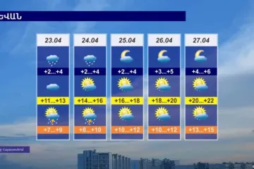 Այսօր և վաղը տեղումներ են սպասվում, առաջիկա օրերին օդի ջերմաստիճանը կբարձրանա 10-12 աստիճանով