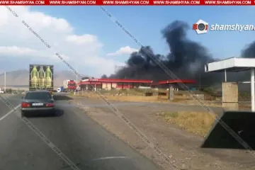 Խոշոր հրդեհ Արագածոտնում. գազալցակայանի տարածքում առաջացած հրդեհի սև ծուխը տեսանելի էր մի քանի կիլոմետրից