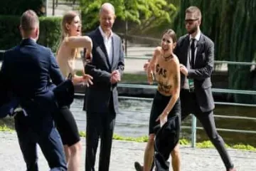 Գերմանիայում ակտիվիստ կանայք մերկացրել են իրենց կուրծքը Շոլցի առջեւ՝ գազի էմբարգոյի կոչ անելով
