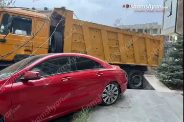 Երևանում հողով բարձված բեռնատարը բախվել է բետոնե էլեկտրասյանը, ապա «Mercedes»-ին և «Volkswagen»-ին